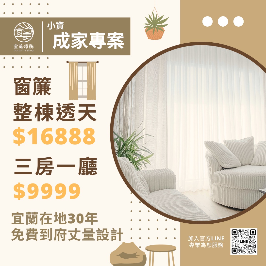 宜美傢飾CurtainsShop的起源可追溯至1999年,當時我們以「隆美窗簾宜蘭加盟店」之名深耕在地,始終秉持高品質與專業服務的理念,為宜蘭的每一個家庭打造專屬的窗簾與溫暖居家氛圍。多年來,我們嚴選優質材料,融合專業設計與精細施工,讓每扇窗都能成為空間的亮點。